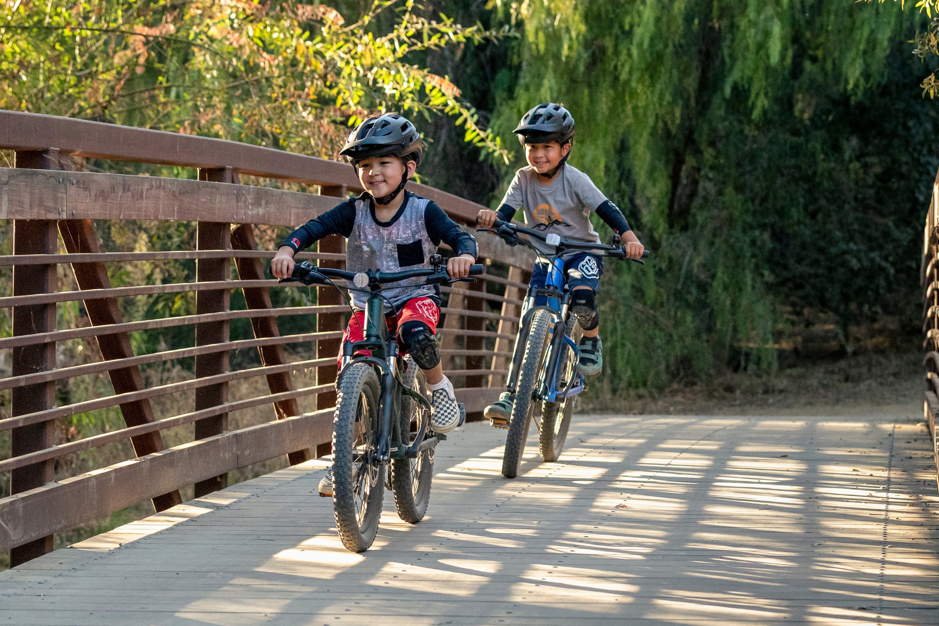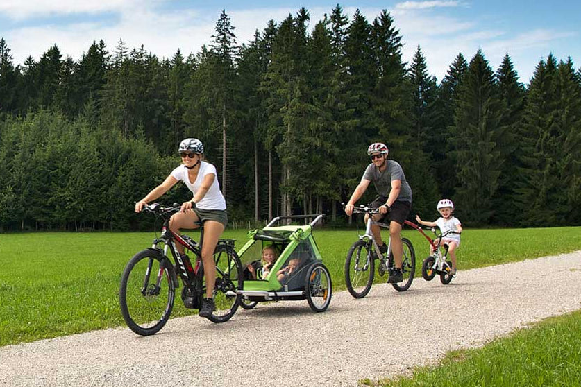 Selbst ein längerer Anstieg wird zum Kinderspiel. Vorausgesetzt ist sicheres Radfahren mit einem 24" Bike. Unsere kleineren Bike Jungs & Mädels können per "Kommit"-Zugseil unterstützt werden oder sind im Thule-Anhänger mit auf Tour.